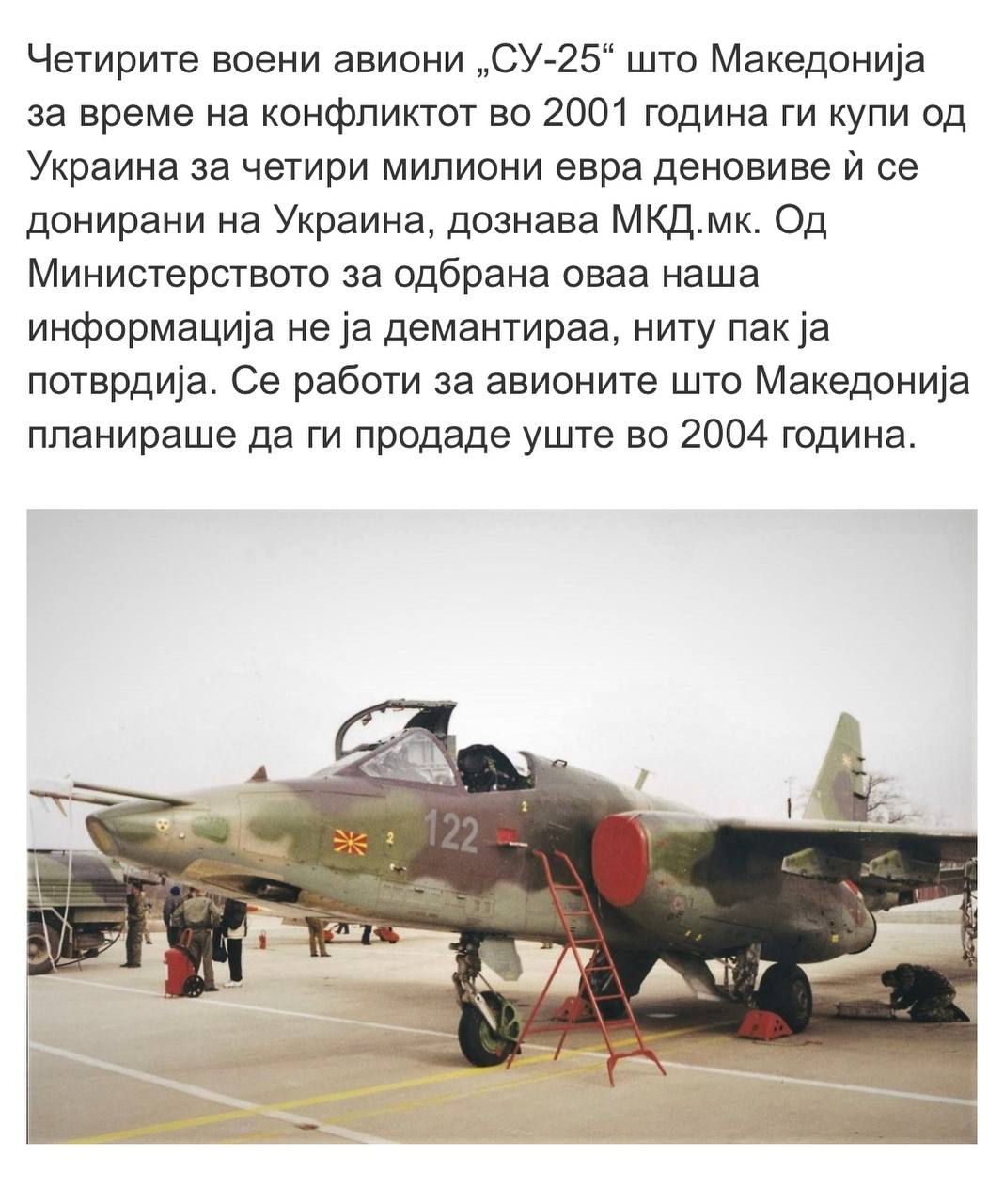 According to the publication, four Su-25s, which Macedonia bought from Ukraine in 2001 for four million euros, were handed over to the Armed Forces of Ukraine.