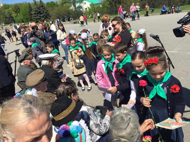 “Great Patriotic War veteran Ivan Zaluzhnyi, who came to the celebration from Zaporizhia, also said that today’s sacred duty of all Ukrainians is to defend their homeland. “We can only do it jointly – east together with west! Glory to Ukraine,” the honorable guest said.”